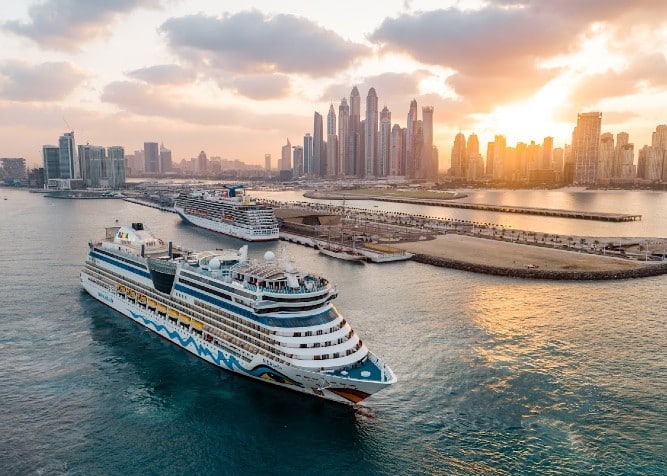 Cristina Bianchi, Cesare Ceccoli, Stefania Beccari e Vincenzo Andreini dovevano salpare per Doha, ma la nave è ferma al Terminal 3 di Port Rashid con la crociera annullata.