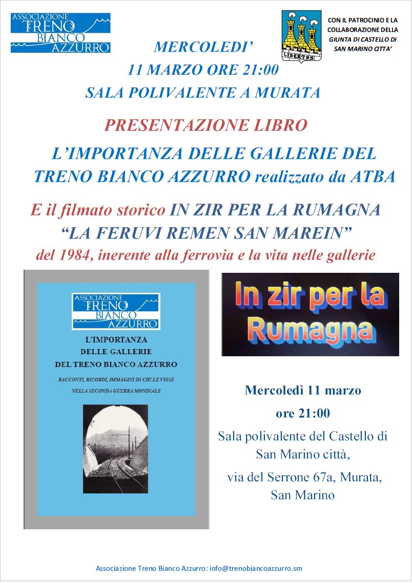 Mercoledì 11 marzo, alle ore 21:00, la sala polivalente di Murata ospiterà la presentazione del libro edito dall’Associazione Treno Bianco Azzurro.