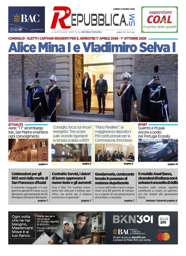 San Marino. La prima pagina de LA REPUBBLICASM