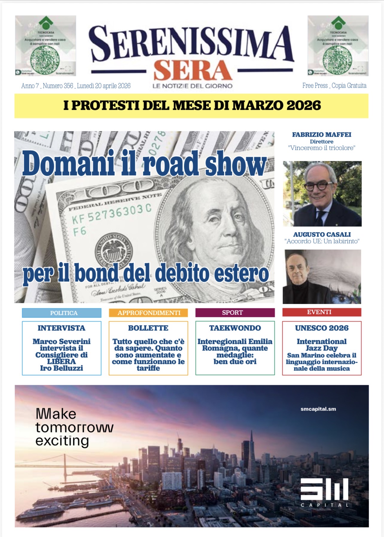 San Marino. La prima pagina del Serenissima Sera