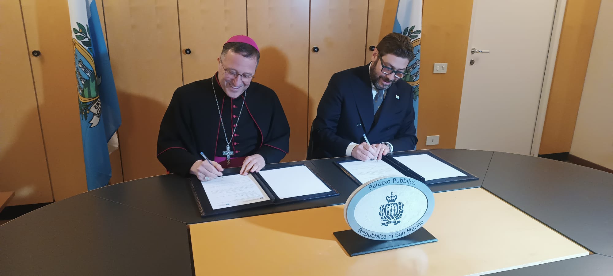 San Marino rafforza il turismo spirituale con un nuovo patto siglato tra Governo e Diocesi. Ieri, nel Palazzo del Governo, il Segretario di Stato per il Turismo Federico Pedini Amati e il Vescovo Domenico Beneventi hanno aggiornato l’accordo del 2021 per valorizzare i cammini di fede sul Titano e nel Montefeltro.